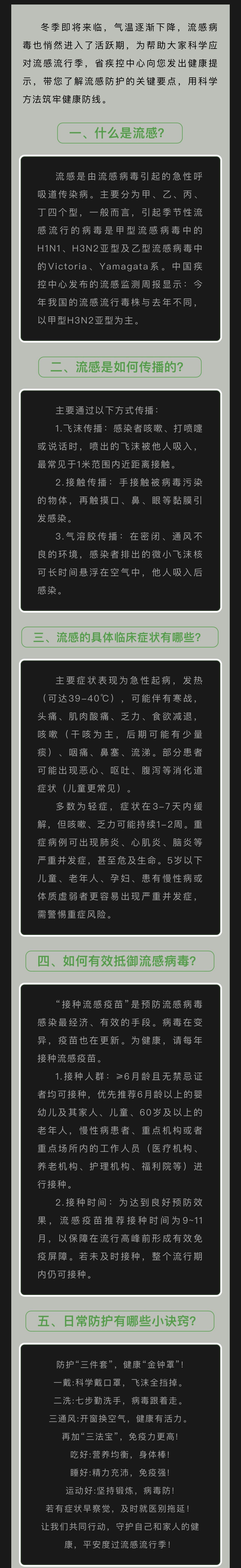 转发:吉林省疾控中心流感流行季健康提示:科学防护,远离流感